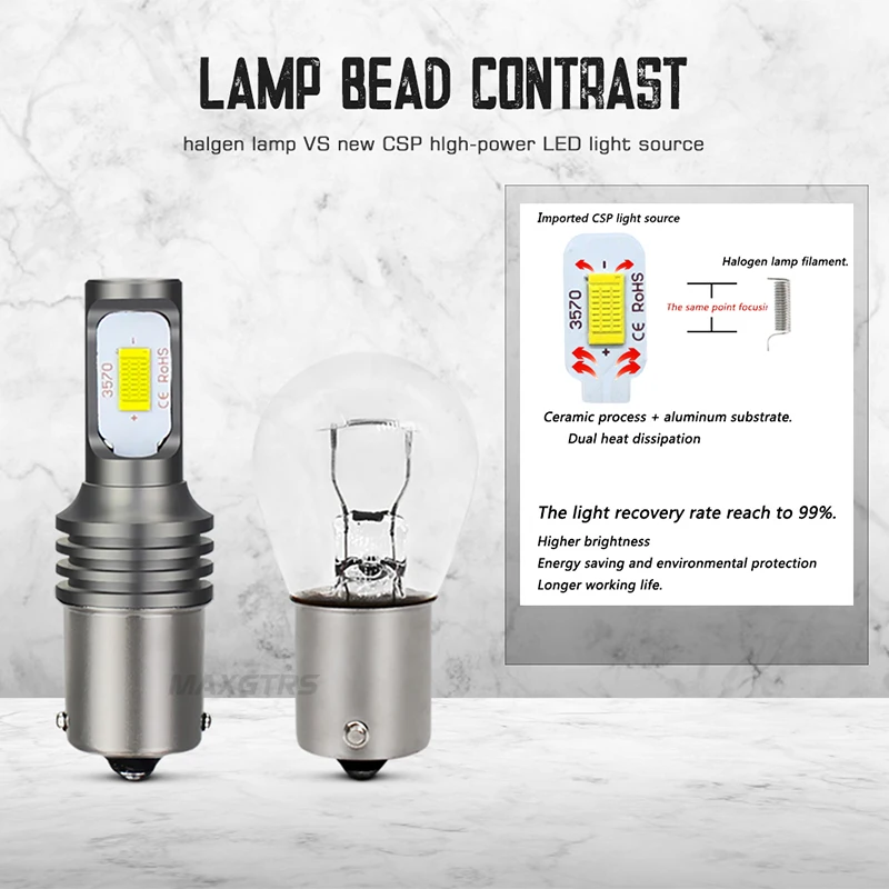 2pcs P21W LED 1156 BA15S LED Bulbs Car Lights 72W Turn Signal Reverse Brake Light Canbus R5W CSP LE